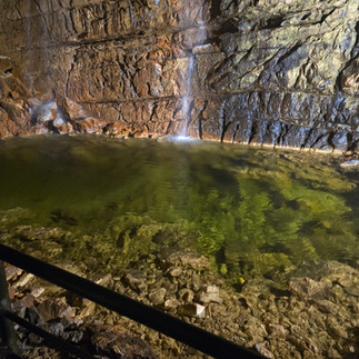 Dopo un pranzo al sacco consumato tra le strade e i vicoli del capoluogo d'Abruzzo, dove abbiamo incontrato tanti compaesani lì residenti, siamo risaliti sul pullman per raggiungere il territorio di S. Demetrio ne' Vestini, dove avevamo prenotato per le 16:00 una visita wild nelle misconosciute e strabilianti Grotte di Stiffe, la cui temperatura interna è di 9 °C. Indossati i caschetti da speleologo, siamo stati guidati negli anfratti di questa grotta carsica, creata dal lavorio del rio Gamberale, a sua volta originato dall'inghiottitoio del Pozzo Caldaio. Inutile dire che si è trattato di un'esperienza unica e affascinante.